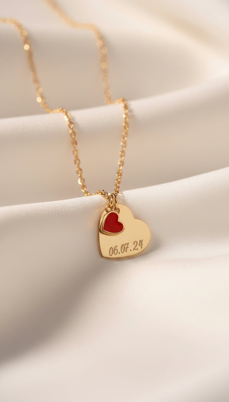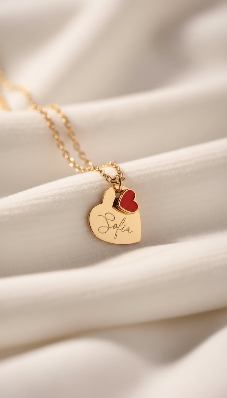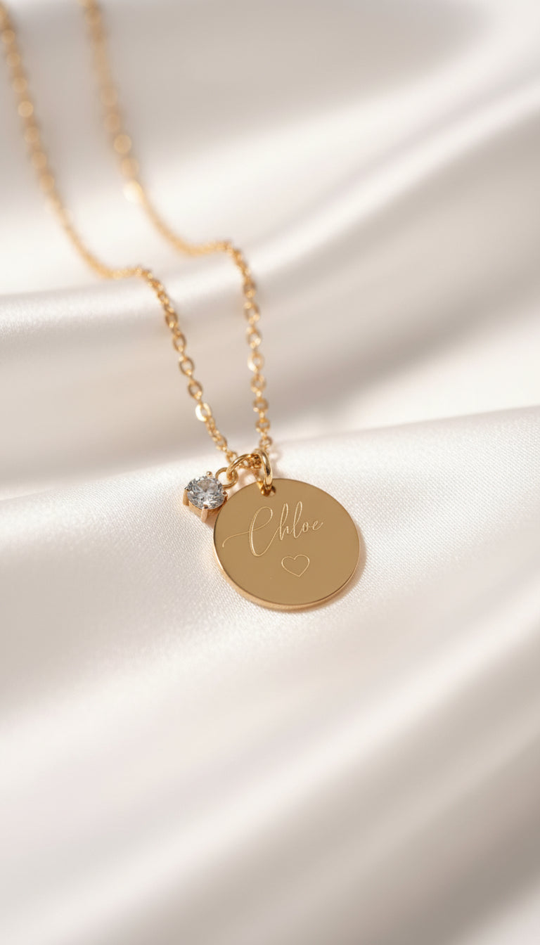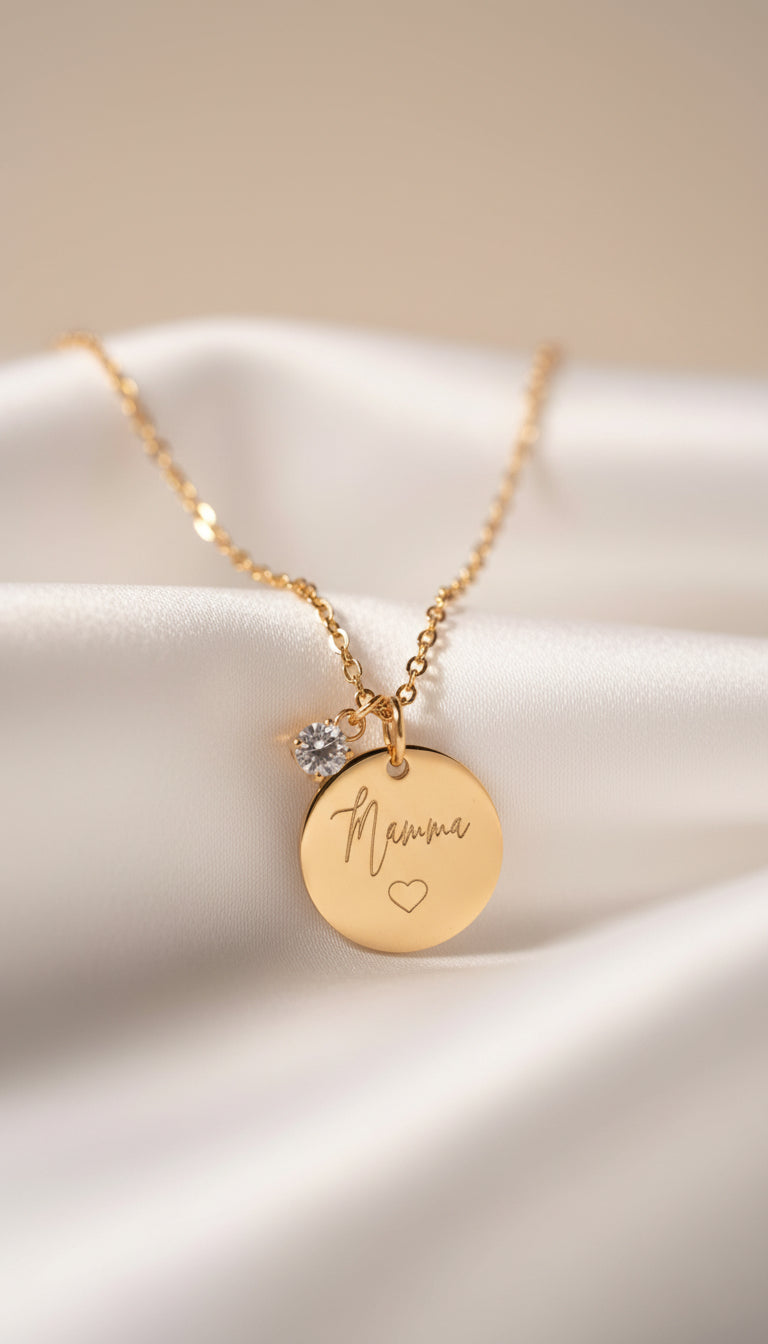 Collane, Bracciali e Ciondoli incisi con nomi, date e frasi.