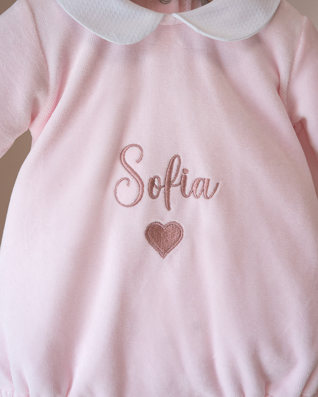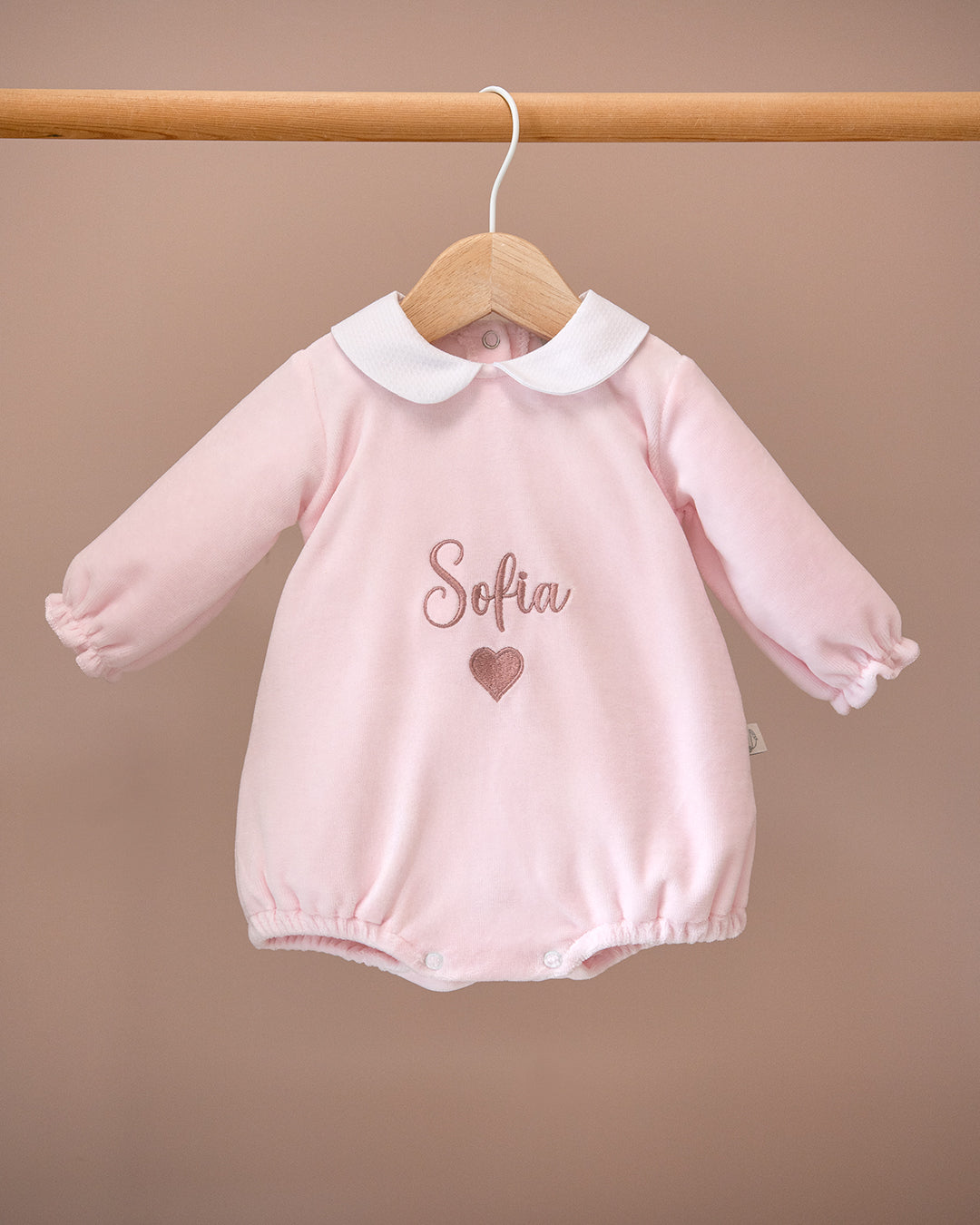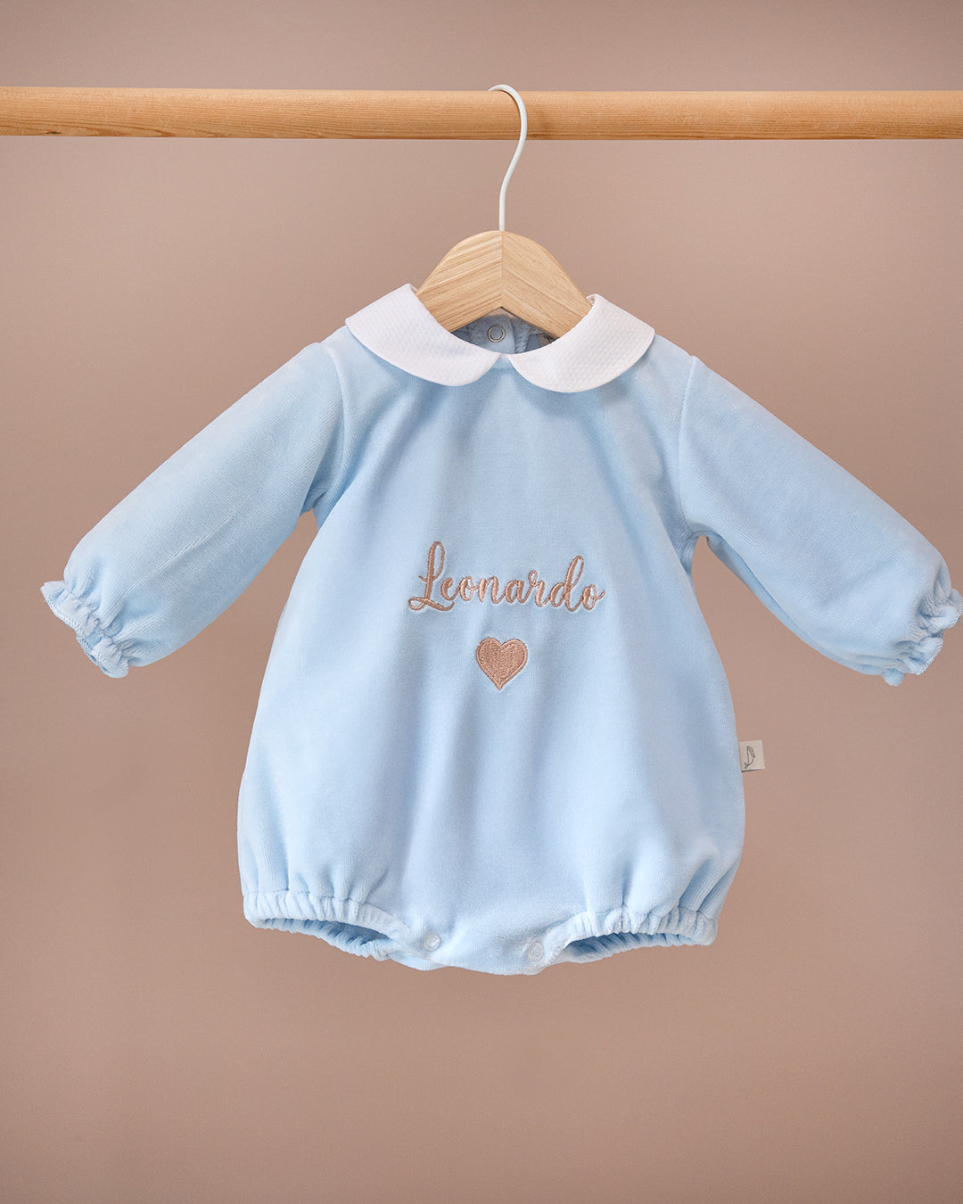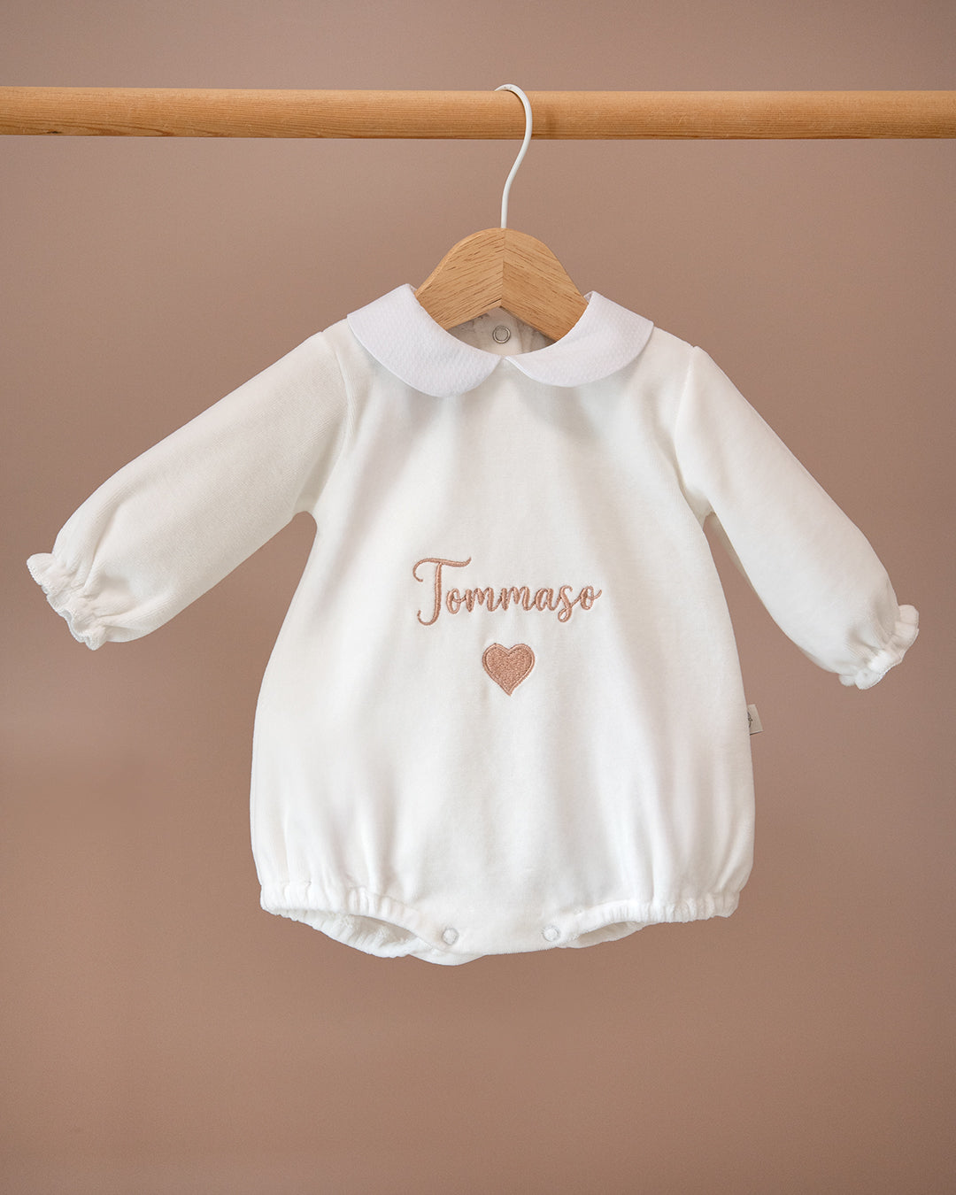 I nostri pagliaccetti sono ricamati una ad una dalle nostre artigiane con il nome del bambino e la decorazione che hai scelto.