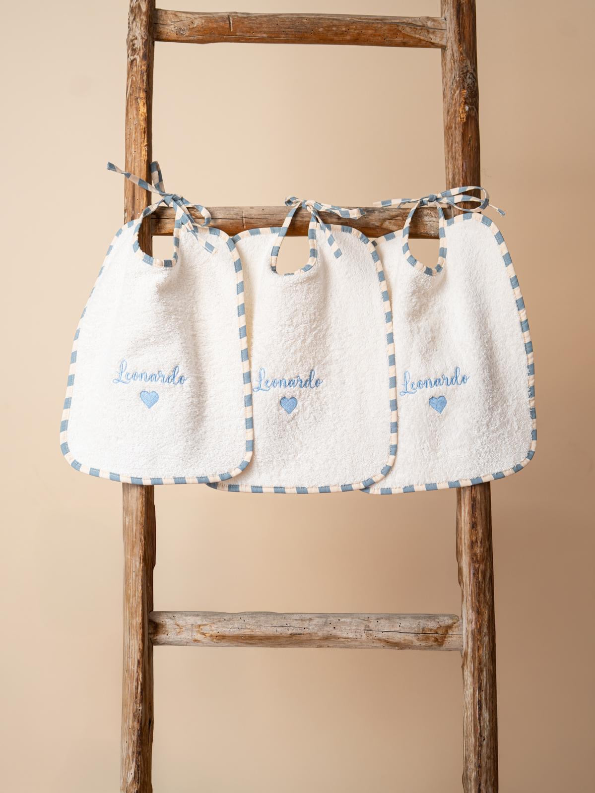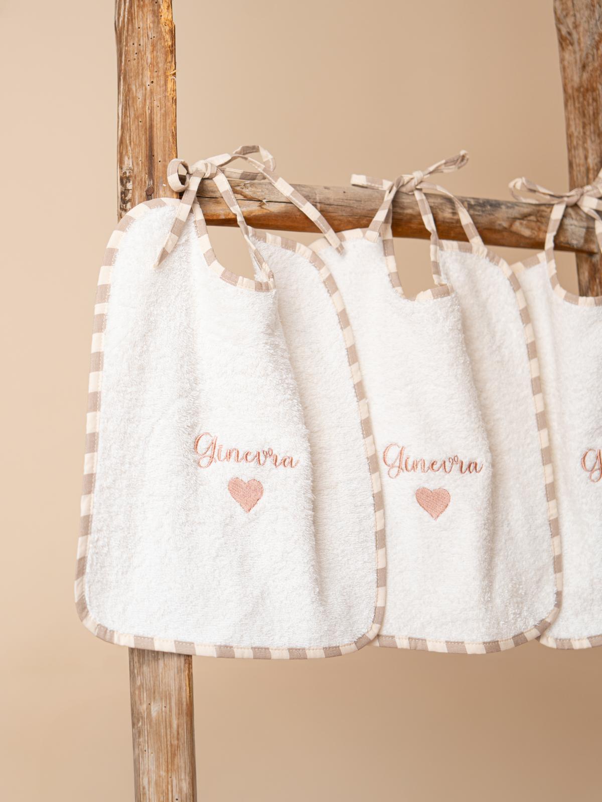I nostri bavaglini sono ricamati uno ad uno dalle nostre artigiane con il nome del bambino.