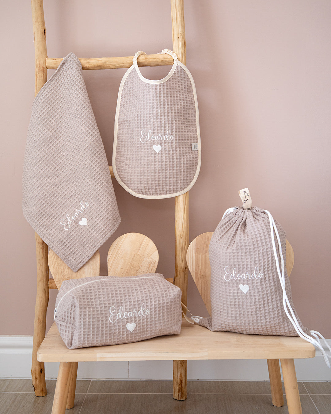 I nostri set sono ricamati uno ad uno dalle nostre artigiane con il nome del bambino che hai scelto.